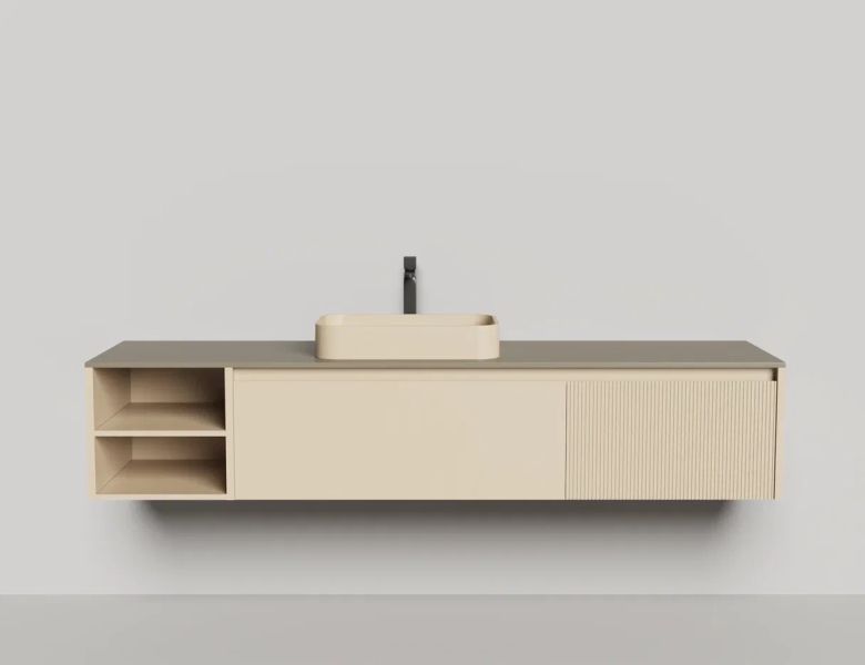 Наполнение для тумбы включает: блоки ячеек для тумб, коврики и комплект внутренней подсветки, которые помогут организовать пространство и создать более удобный доступ к вещам.Тумба DOMINO, дополненная столешницей COSTA из каменного литья S-Stone, гарантирует практичность и простоту ухода.