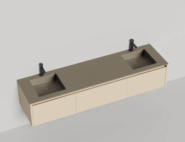 - Тумба и столешница из материала S-Stone в сборе (накладные раковины укомплектованы донным клапаном и поставляются в отдельной коробке)