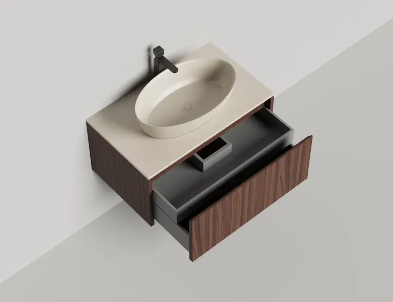 Наполнение для тумбы включает: блоки ячеек для тумб, коврики и комплект внутренней подсветки, которые помогут организовать пространство и создать более удобный доступ к вещам.Тумба DOMINO, дополненная столешницей COSTA из каменного литья S-Stone, гарантирует практичность и простоту ухода.