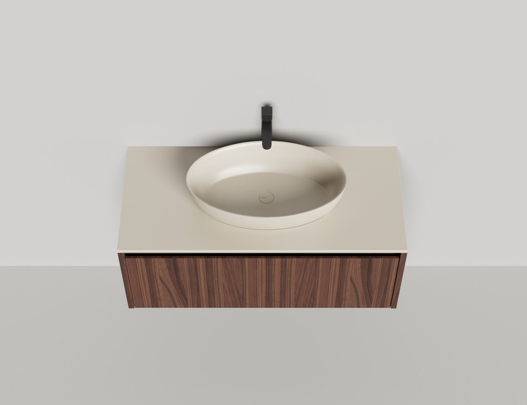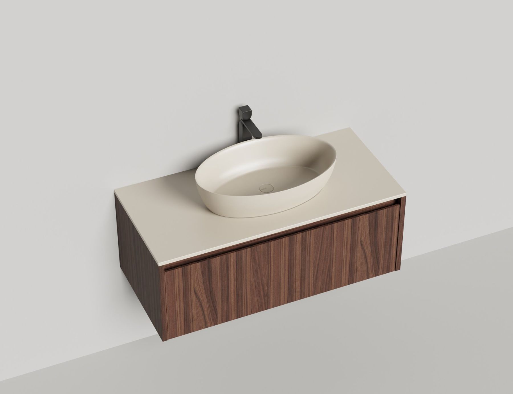 - Тумба и столешница из материала S-Stone в сборе (накладные раковины укомплектованы донным клапаном и поставляются в отдельной коробке)