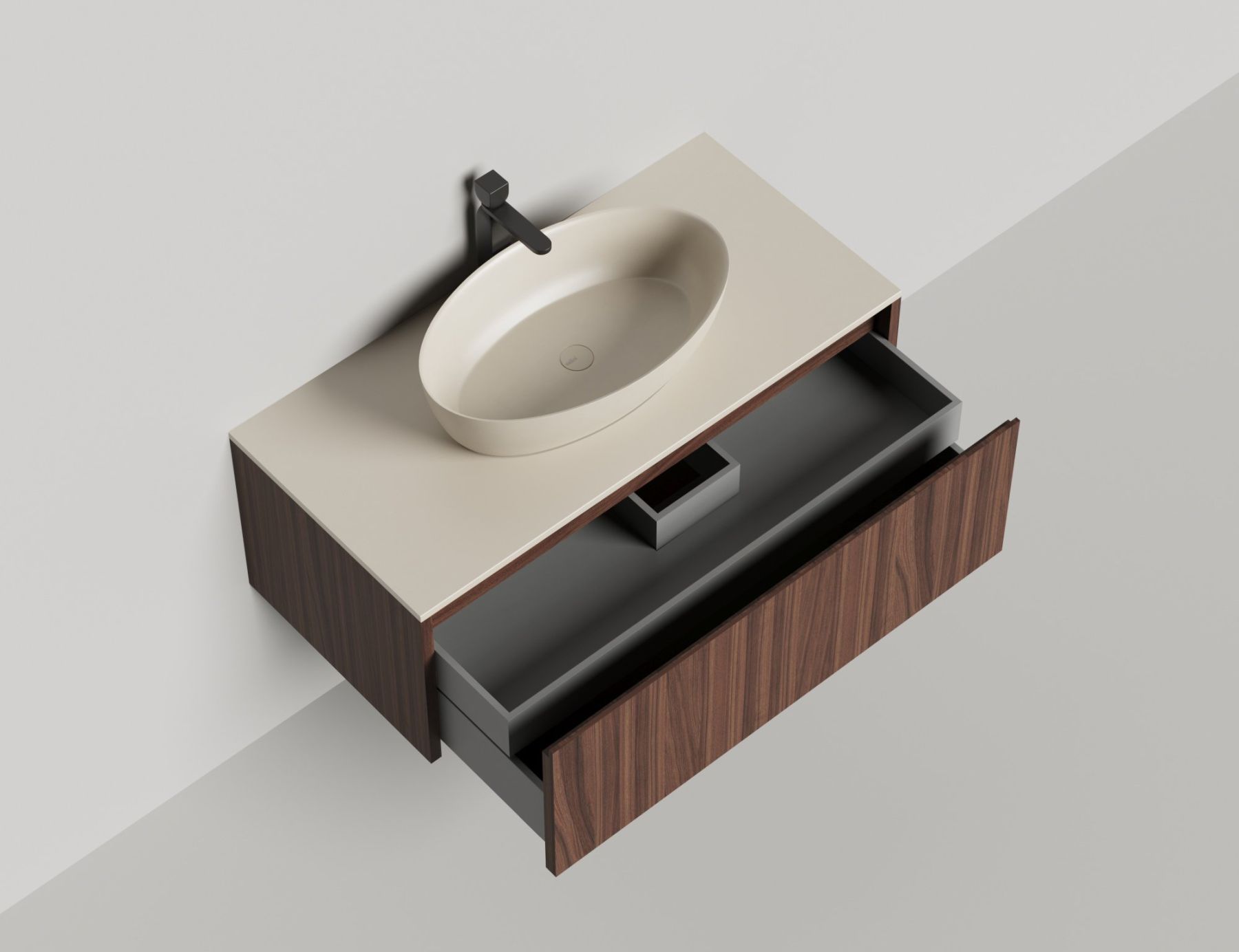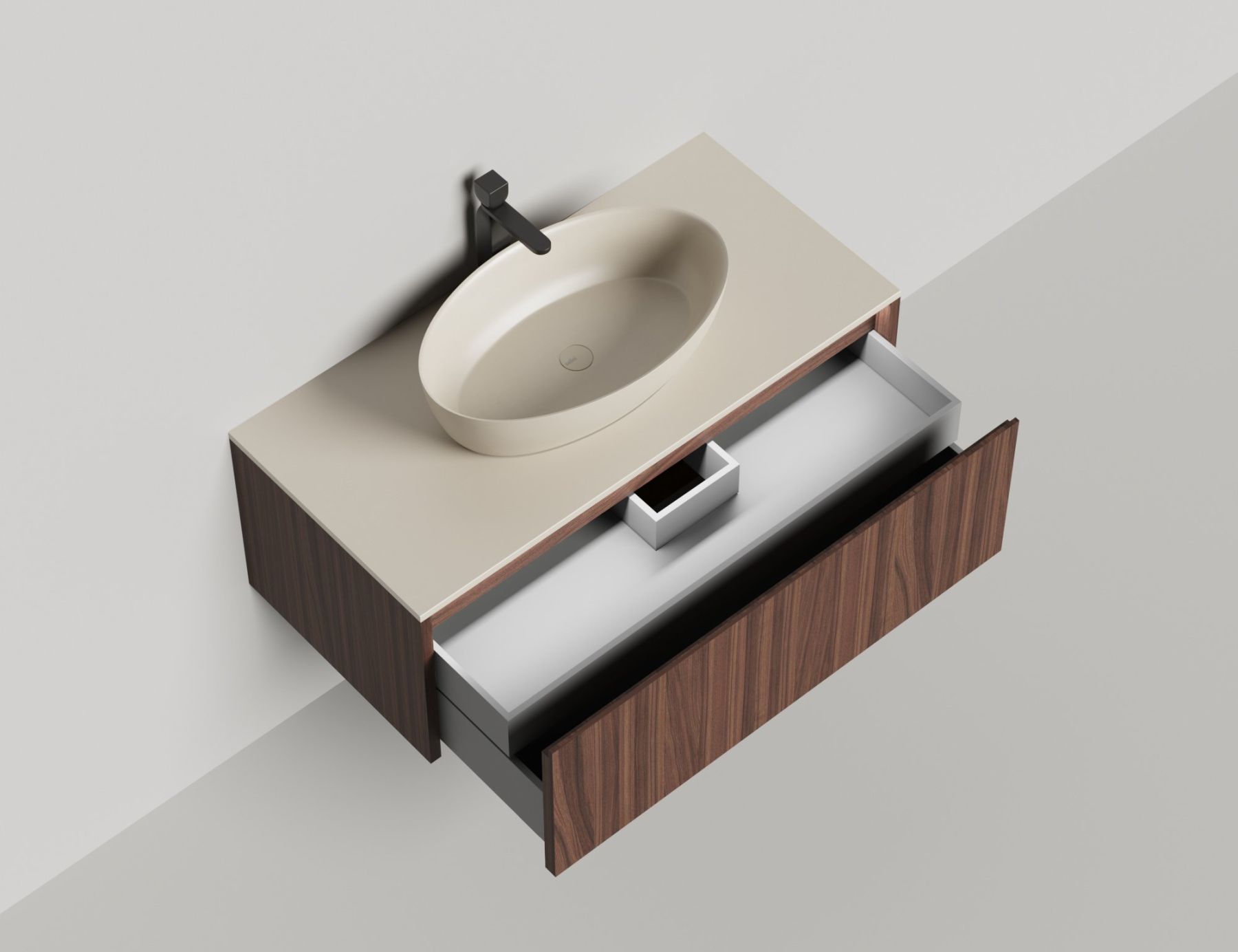 Наполнение для тумбы включает: блоки ячеек для тумб, коврики и комплект внутренней подсветки, которые помогут организовать пространство и создать более удобный доступ к вещам.Тумба DOMINO, дополненная столешницей COSTA из каменного литья S-Stone, гарантирует практичность и простоту ухода.