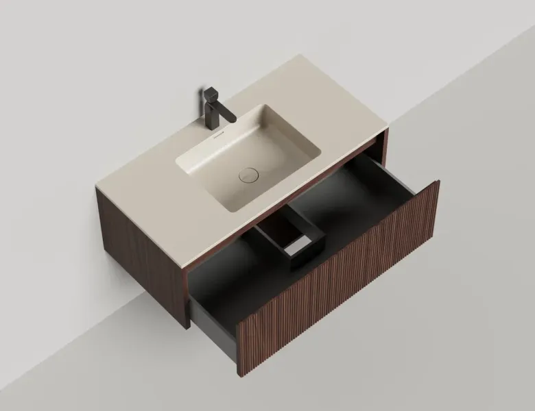 Наполнение для тумбы включает: блоки ячеек для тумб, коврики и комплект внутренней подсветки, которые помогут организовать пространство и создать более удобный доступ к вещам.Тумба DOMINO, дополненная столешницей COSTA из каменного литья S-Stone, гарантирует практичность и простоту ухода.