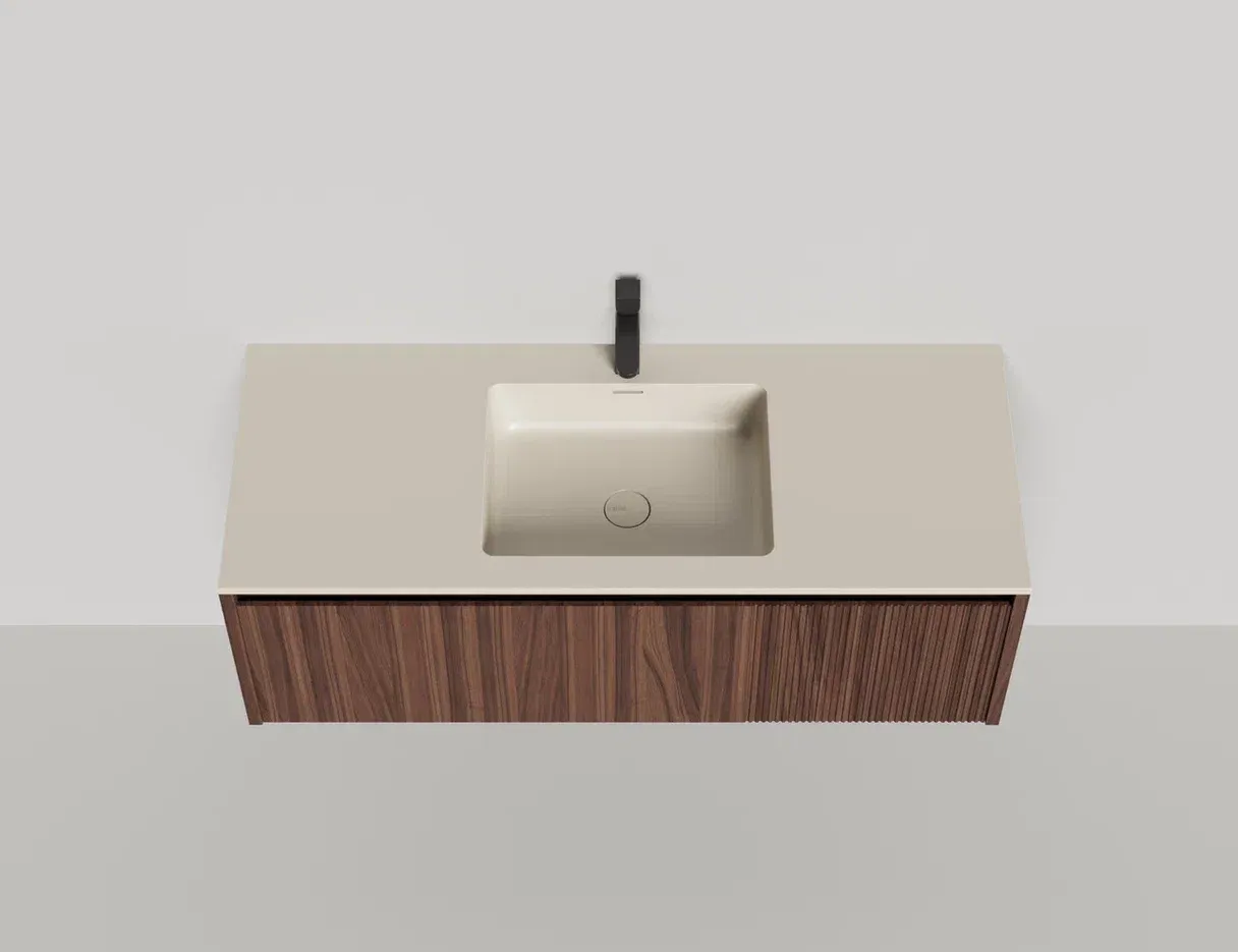 - Тумба и столешница из материала S-Stone в сборе (накладные раковины укомплектованы донным клапаном и поставляются в отдельной коробке)