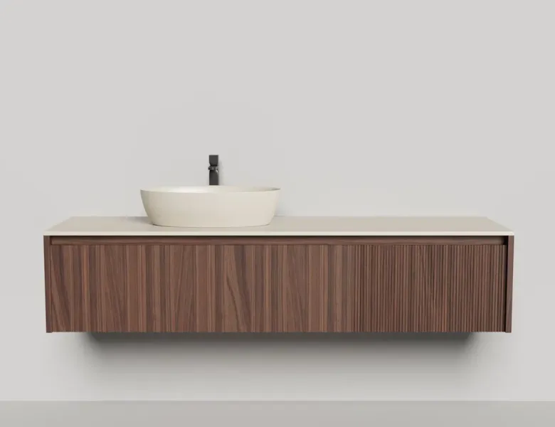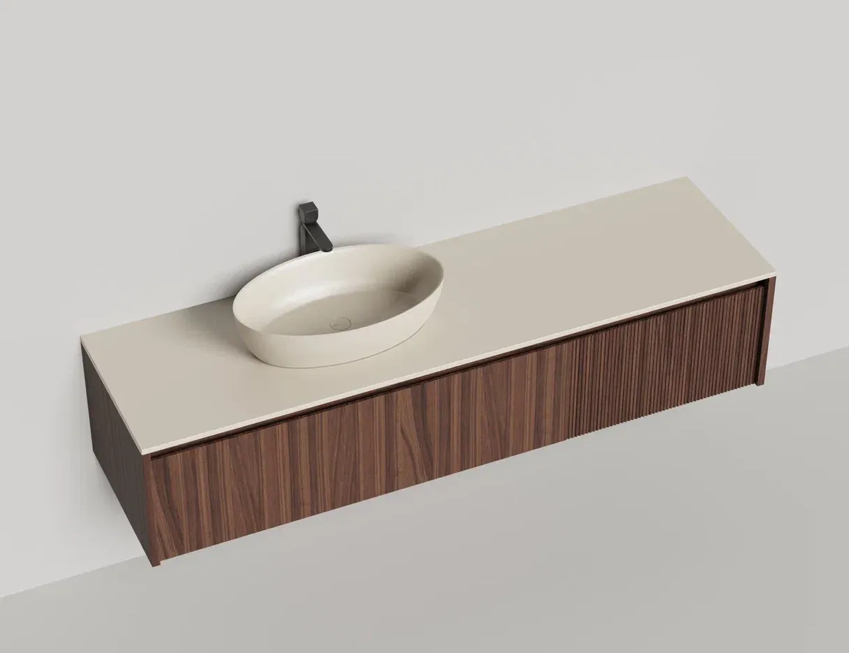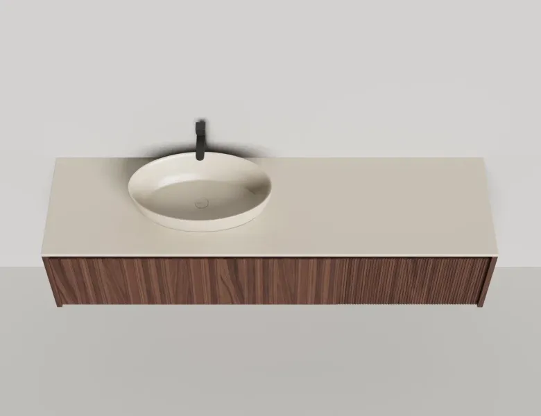 - Тумба и столешница из материала S-Stone в сборе (накладные раковины укомплектованы донным клапаном и поставляются в отдельной коробке)