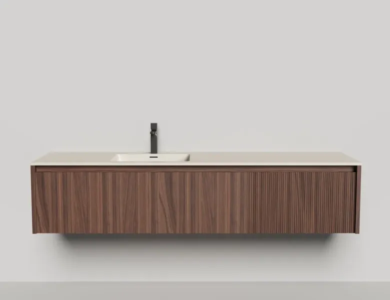 Подвесная тумба DOMINO предназначена для установки со встроенными или накладными раковинами Salini. Она отличается современным дизайном и привлекательным внешним видом. Гладкие и рельефные фасады ящиков в шпоне дерева или в матовом лаке позволяют подобрать комбинацию подходящего размера (ширина от 80 до 200 см) и наполнения.