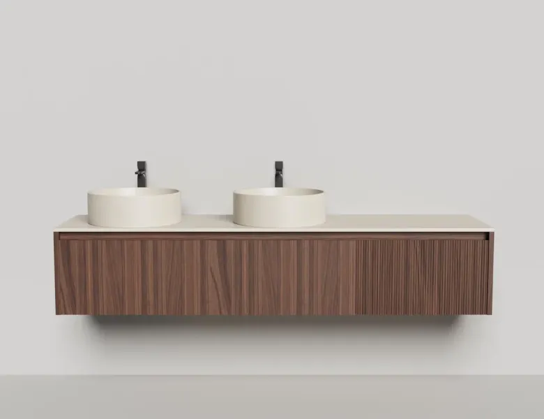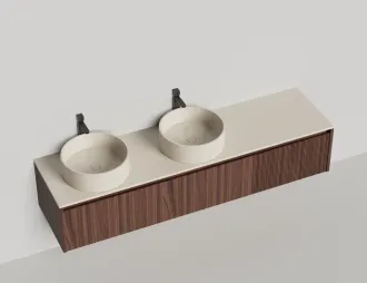 - Тумба и столешница из материала S-Stone в сборе (накладные раковины укомплектованы донным клапаном и поставляются в отдельной коробке)