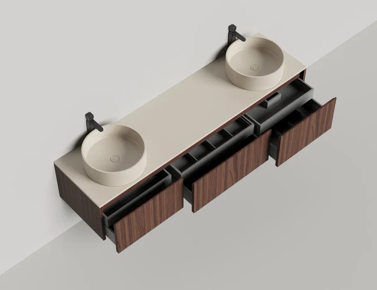 Наполнение для тумбы включает: блоки ячеек для тумб, коврики и комплект внутренней подсветки, которые помогут организовать пространство и создать более удобный доступ к вещам.Тумба DOMINO, дополненная столешницей COSTA из каменного литья S-Stone, гарантирует практичность и простоту ухода.