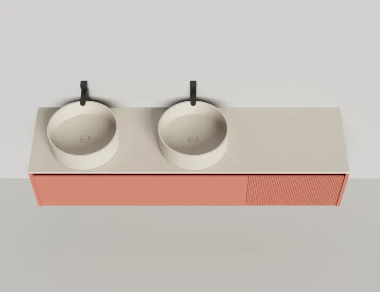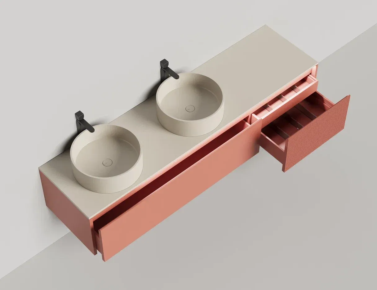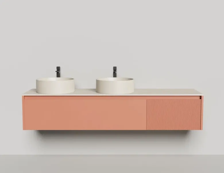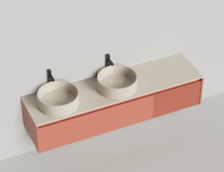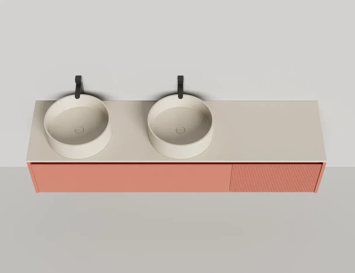 - Тумба и столешница из материала S-Stone в сборе (накладные раковины укомплектованы донным клапаном и поставляются в отдельной коробке)