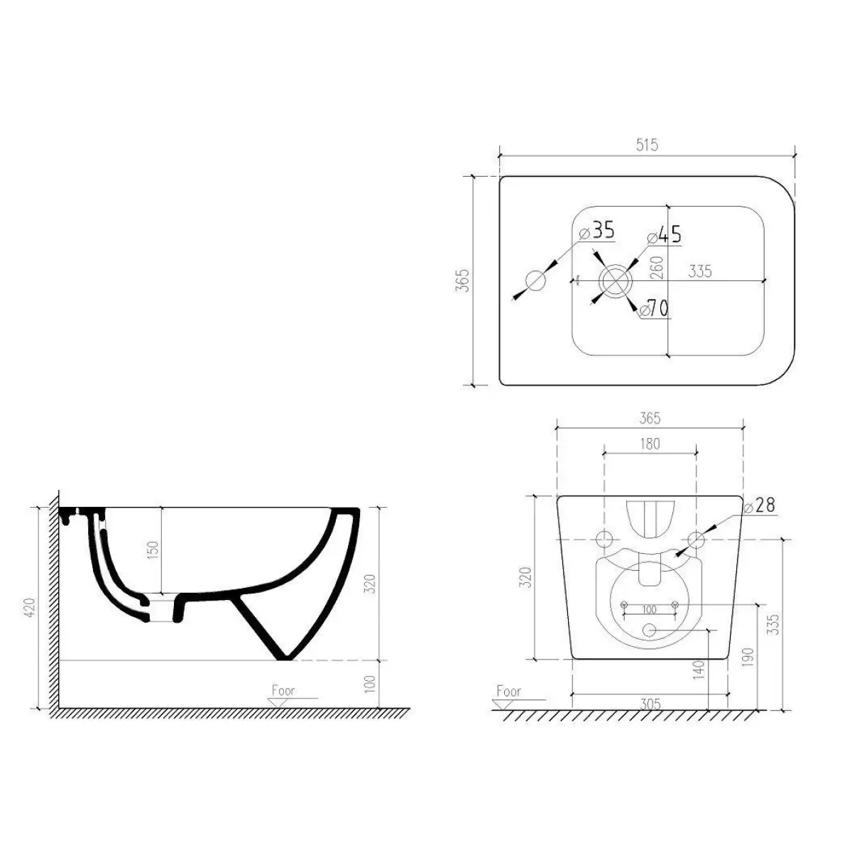 Биде подвесное с креплением