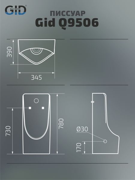Подвесной сенсорный писсуар Gid Q9506 91111 белый 34.5x39x78 Подвесной сенсорный писсуар Gid Q9506 91111 белый 34.5x39x78 Казань 23937.00 30300.00 GID