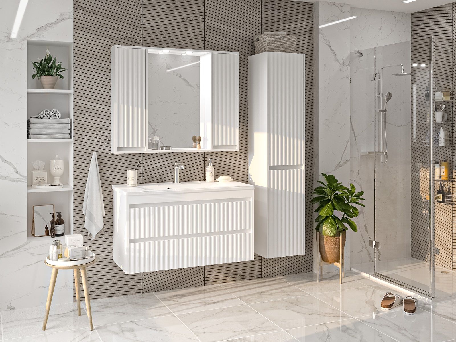 Шкаф-пенал для ванной комнаты – это стильное решение, которое гармонично вписывается в современный интерьер. Его элегантные линии и аккуратные формы создают атмосферу чистоты и порядка, что особенно важно в таком интимном пространстве. Изготовленный из качественных влагостойких материалов, этот шкаф обеспечивает долговечность и надежность, даже в условиях повышенной влажности.Основное преимущество шкаф-пенала заключается в его вместительности. Удобные полки и ящики позволяют организовать пространство и разместить все необходимое: от косметики до бытовых принадлежностей. Каждая деталь продумана для удобства использования, что делает утренние и вечерние ритуалы более приятными.Будь то строгий минимализм или уютный скандинавский стиль, шкаф-пенал станет акцентом, который подчеркивает индивидуальность вашего пространства. Не упустите возможность преобразить свою ванную комнату, добавив в нее этот элегантный и практичный элемент.