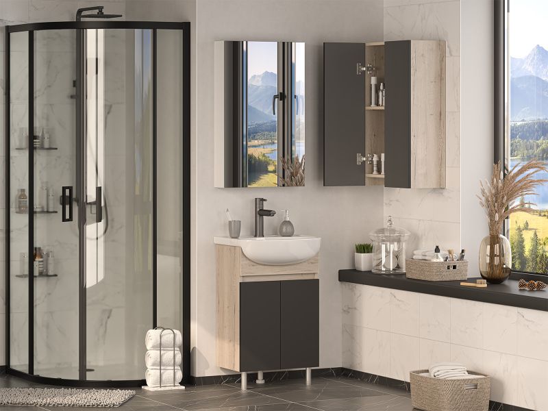 Шкаф для ванной комнаты – это стильное решение, которое гармонично вписывается в современный интерьер. Его элегантные линии и аккуратные формы создают атмосферу чистоты и порядка, что особенно важно в таком интимном пространстве. Изготовленный из качественных влагостойких материалов, этот шкаф обеспечивает долговечность и надежность, даже в условиях повышенной влажности.Основное преимущество шкаф заключается в его вместительности. Удобные полки и ящики позволяют организовать пространство и разместить все необходимое: от косметики до бытовых принадлежностей. Каждая деталь продумана для удобства использования, что делает утренние и вечерние ритуалы более приятными.Будь то строгий минимализм или уютный скандинавский стиль, шкаф станет акцентом, который подчеркивает индивидуальность вашего пространства. Не упустите возможность преобразить свою ванную комнату, добавив в нее этот элегантный и практичный элемент.