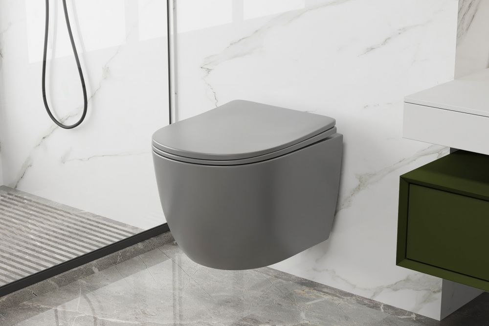Подвесной унитаз ABBER Bequem AC1103MG безободковый серый матовый купить