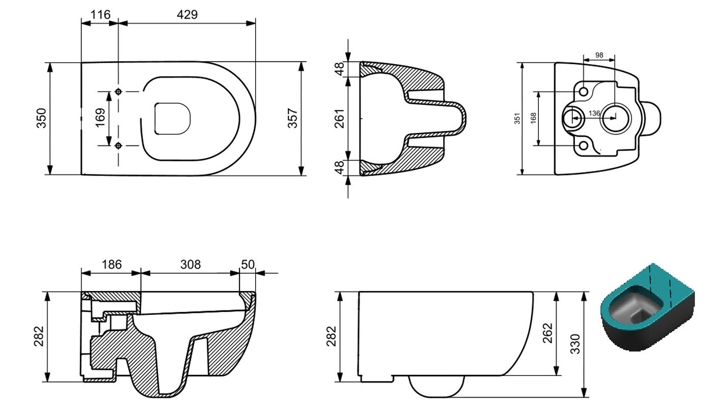 Укороченный унитаз:нет