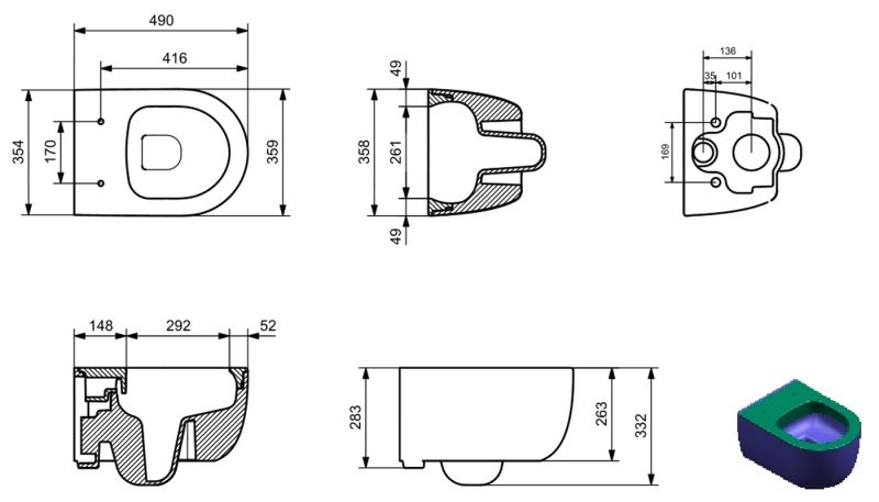 Укороченный унитаз:нет