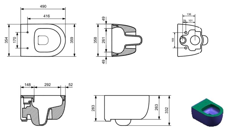 Укороченный унитаз:нет