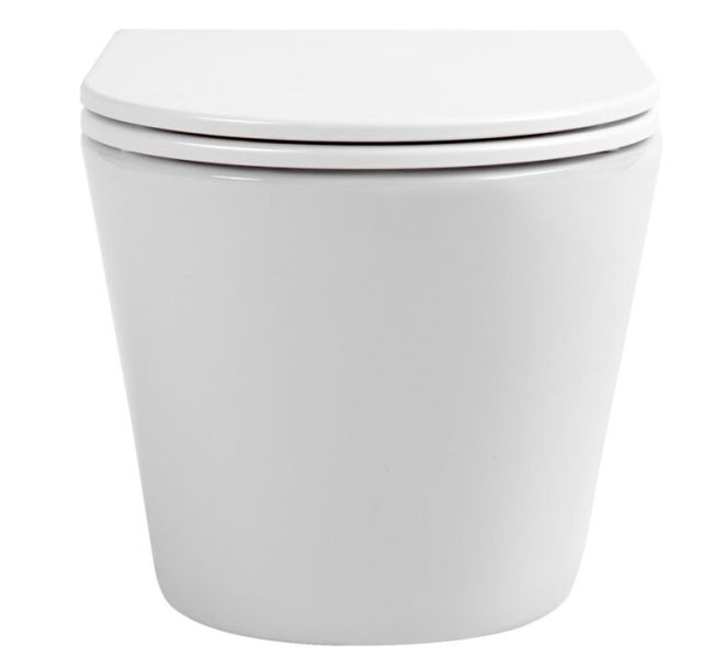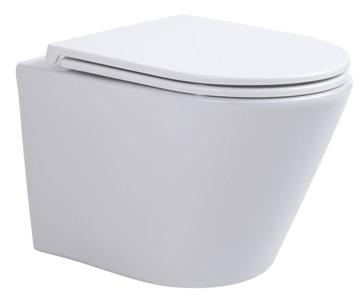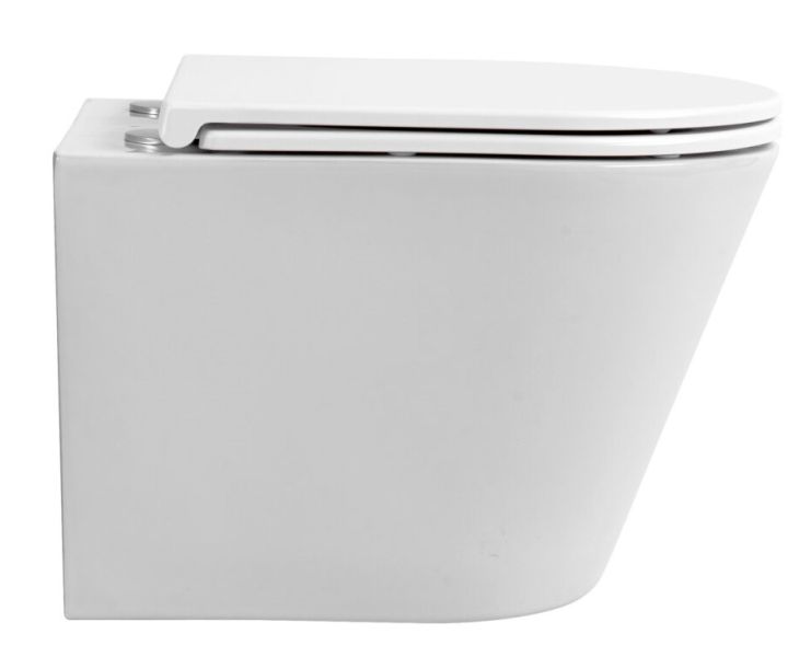 Подвесной безободковый унитаз с системой скрытого монтажа, крышкой-сидением из дюропласта с функцией soft-close и quick release.