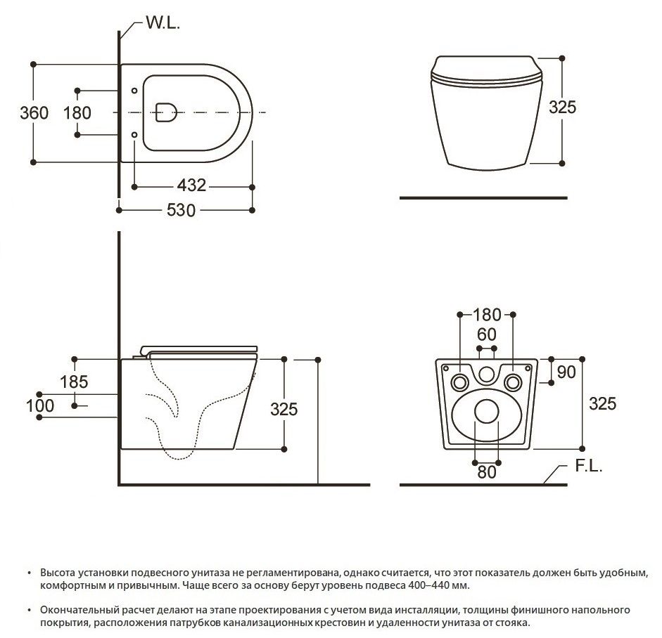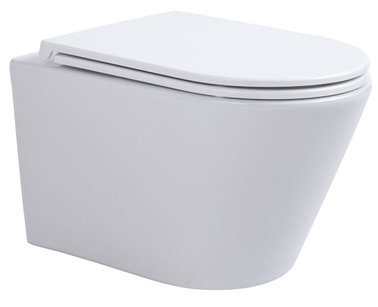 Подвесной безободковый унитаз с системой скрытого монтажа, крышкой-сидением из дюропласта с функцией soft-close и quick release.