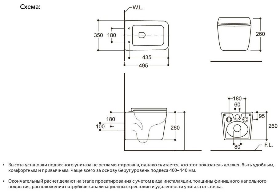 Подвесной безободковый унитаз с системой скрытого монтажа, крышкой-сидением из дюропласта с функцией soft-close и quick release.