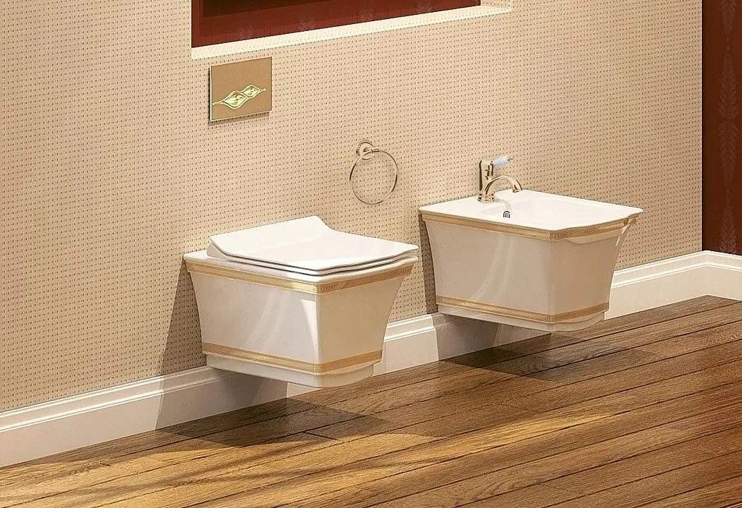 Подвесной унитаз Boheme Hermitage белый/золото 951-G купить