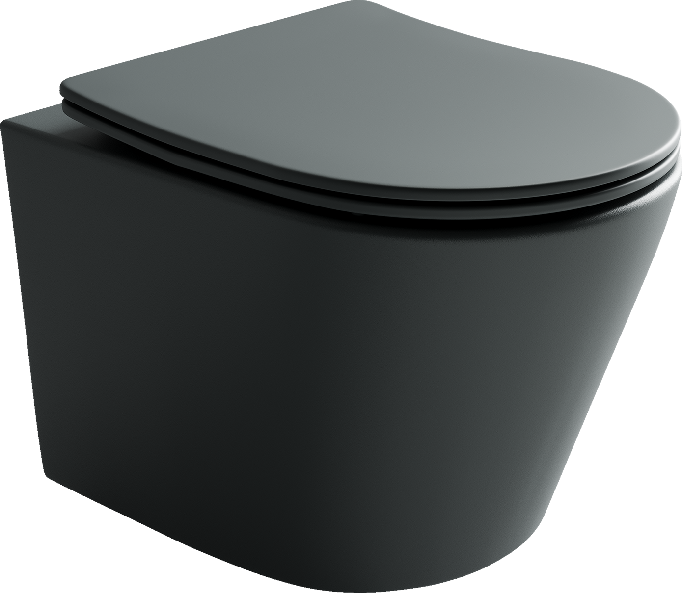Подвесной унитаз Balearica Rimless (цвет Темный Антрацит Матовый), глубокий смыв, с крепежом для полностью скрытого монтажа, ультра тонким с сидением и крышкой с функцией плавного закрытия, дюропласт