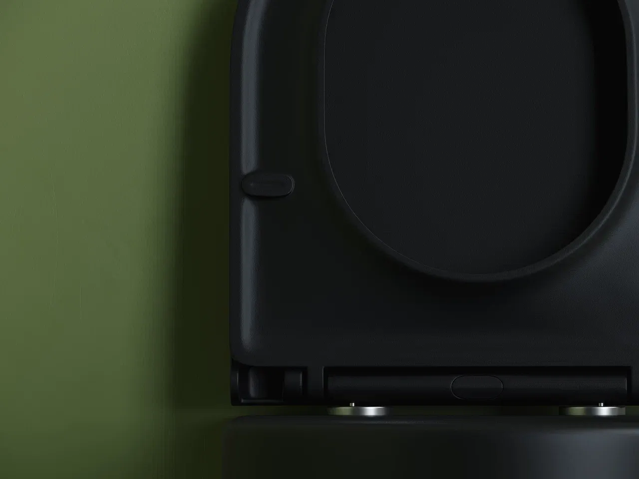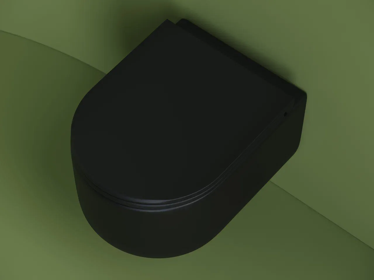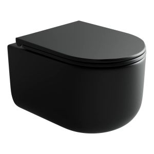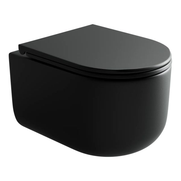 Подвесной унитаз Ulma Rimless, глубокий смыв, с крепежом для полностью скрытого монтажа, ультра тонким с сидением и крышкой с функцией плавного закрытия (цвет чёрный матовый)
