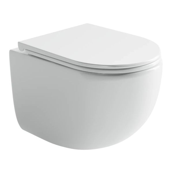 Подвесной унитаз UP Rimless, смыв Торнадо, с крепежом для полностью скрытого монтажа, ультра тонким с сидением и крышкой с функцией плавного закрытия, цвет белый