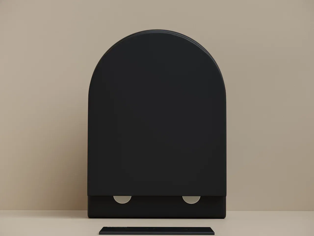 Подвесной унитазUP Rimless, смыв Торнадо, с крепежом для полностью скрытого монтажа, ультра тонким с сидением и крышкой с функцией плавного закрытия, цвет чёрный матовый