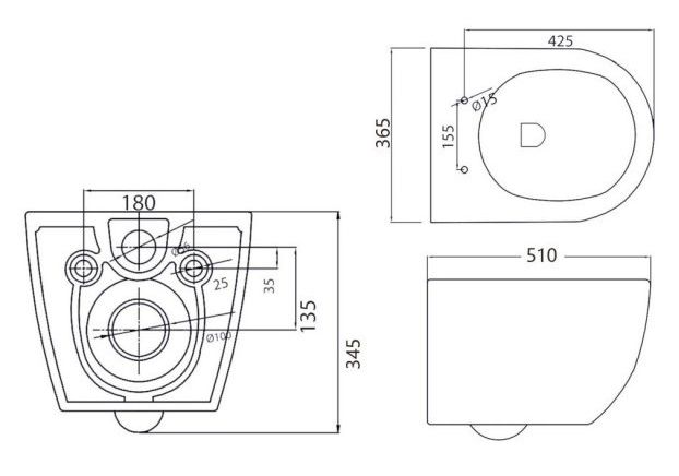Унитаз подвесной безободковый c сиденьем