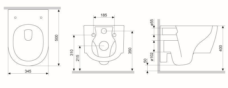 Прилегание унитаза к стене:вплотную