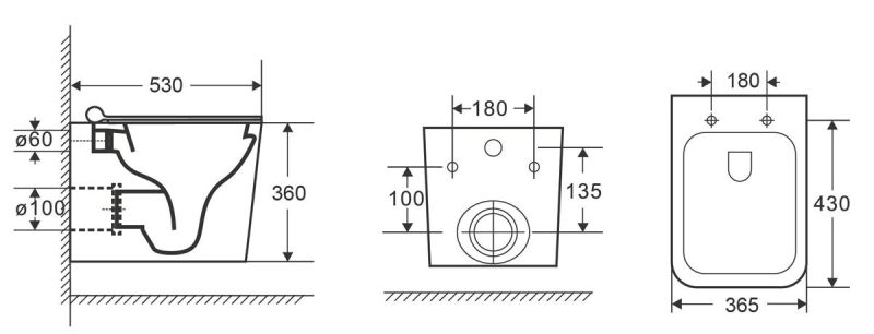 Прилегание унитаза к стене:вплотную