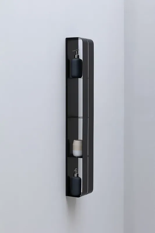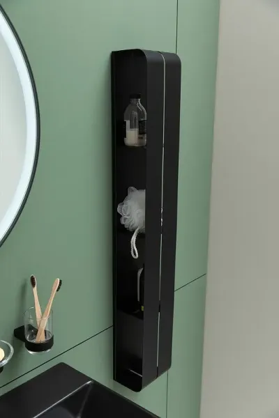 Полка Aquanet Магнум H 15x100 черная матовая, вертикальная - идеальное решение для хранения вещей и аксессуаров в ванной комнате. Она состоит из трех полочек и вертикального каркаса без острых краев и углов. Легкий монтаж полочки для ванной обусловлен идущей в комплекте схемы для точной разметки. Материал настенной полки - нержавеющая сталь толщиной 1,5 мм. Благодаря скрытым креплениям и материалу, полку можно размещать даже в мокрых зонах ванной комнаты без опасений за ее прочность и сохранность.