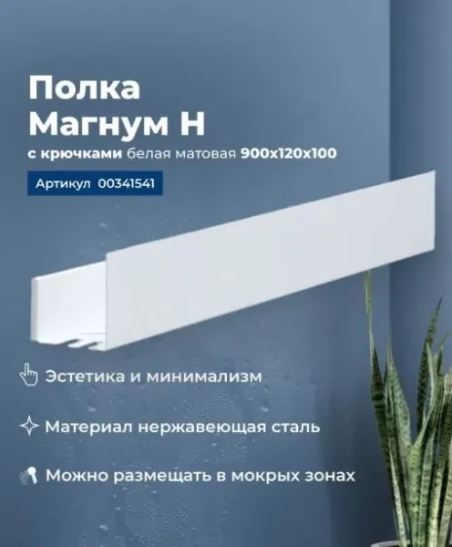 Полка Aquanet Магнум Н 90x12 белая матовая, с крючками — это компактное и стильное решение для организации пространства, которое сочетает в себе функциональность и современный дизайн. Вот ее основные характеристики и преимущества: