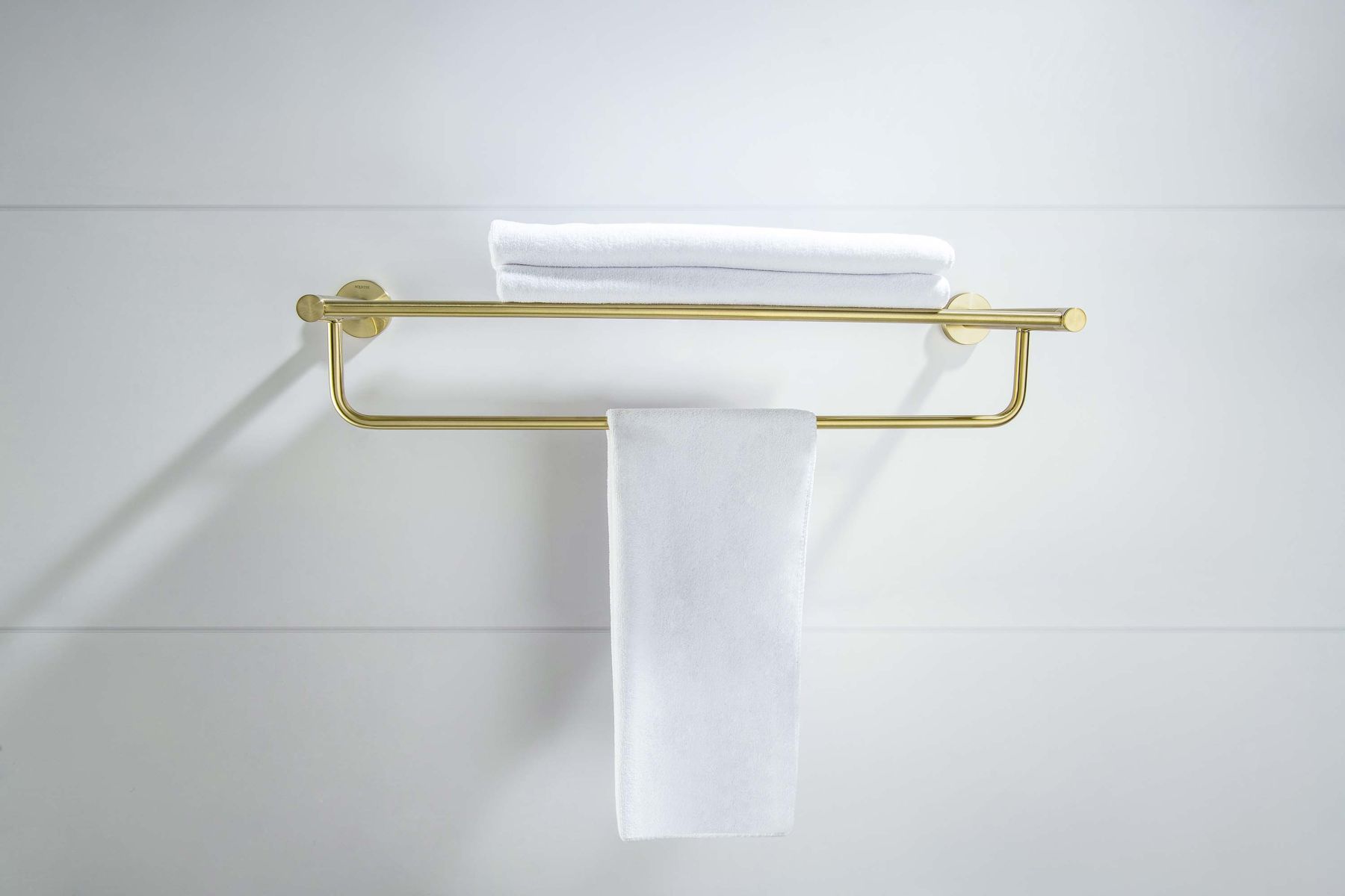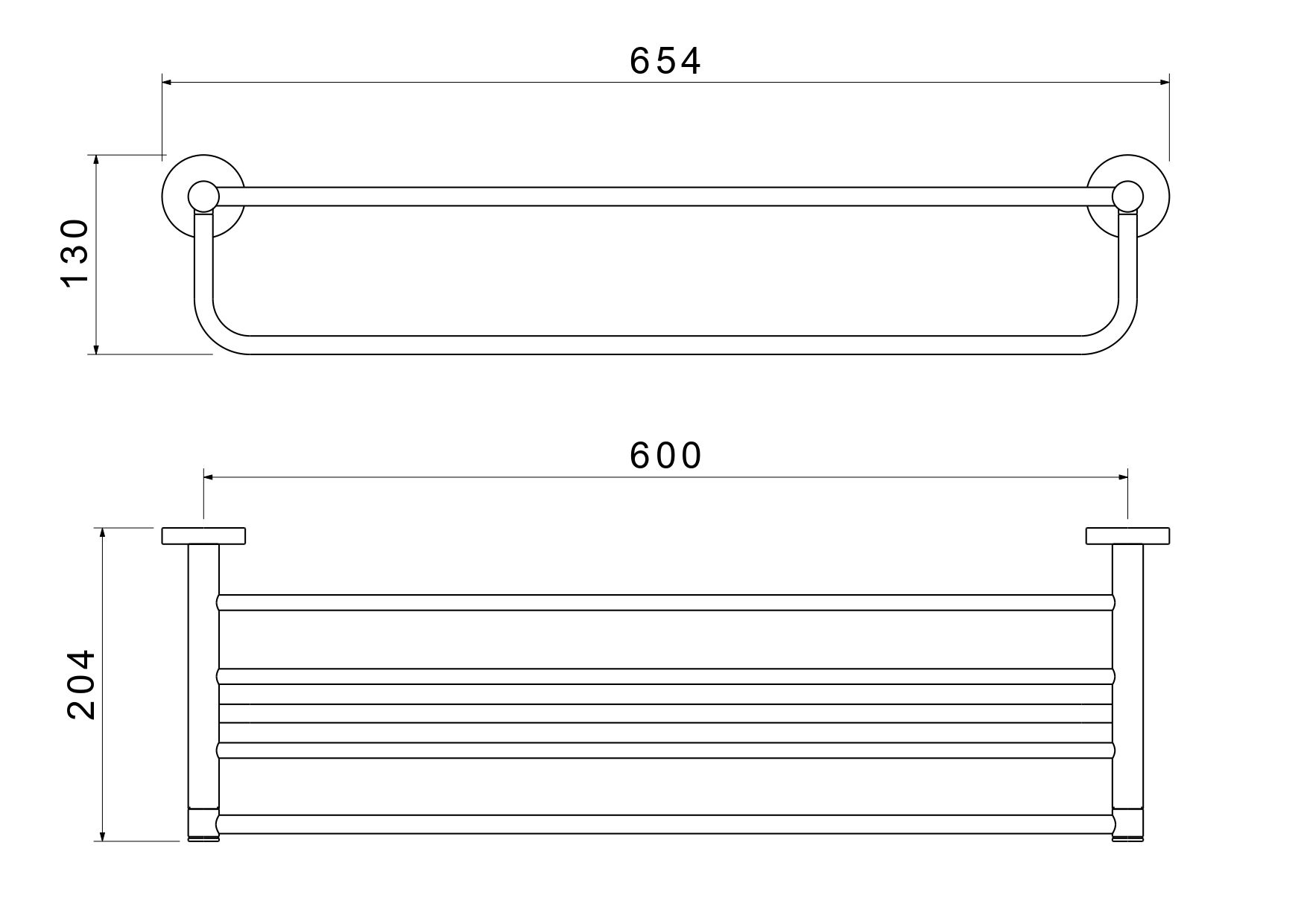 Общий размер (мм): 654*204*130Основной материал: латунь, нержавеющая стальКоличество полок: 2Метод крепления: шурупыМонтаж: на стенуНазначение: аксессуарыТип продукта: полка для полотенецГарантия (лет): 5Легкая установка