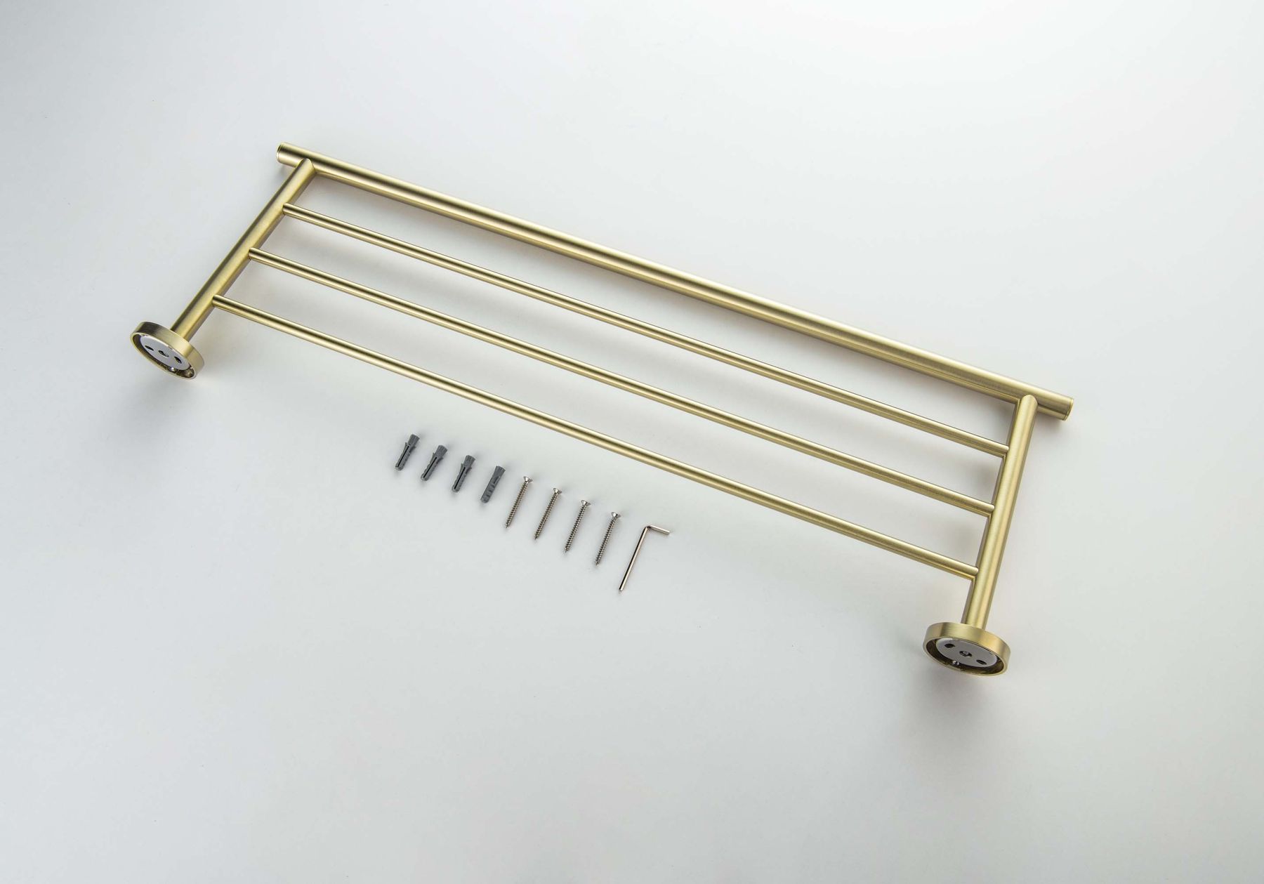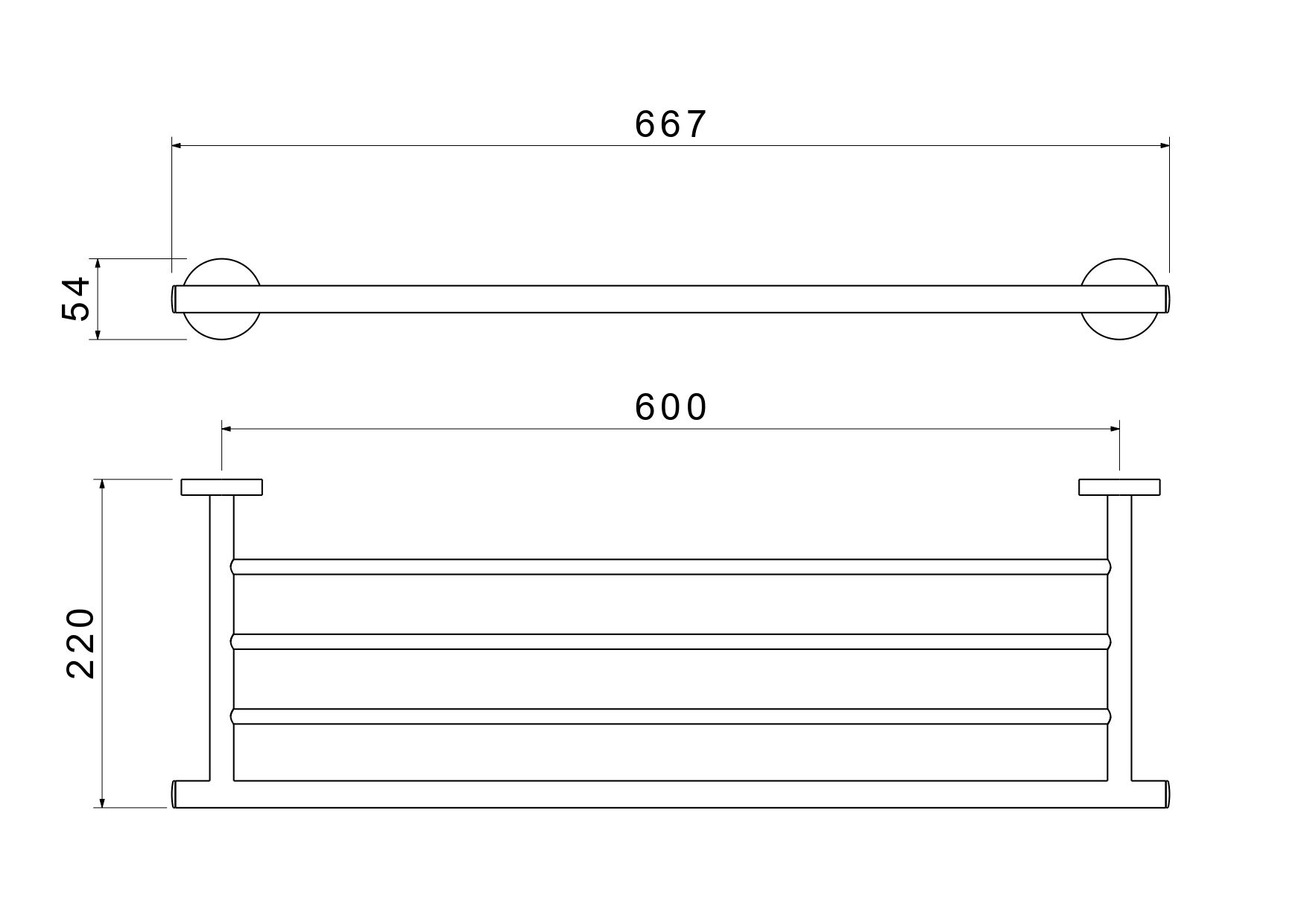 Общий размер (мм): 667*220*54Основной материал: латунь, нержавеющая стальКоличество полок: 2Метод крепления: шурупыМонтаж: на стенуНазначение: аксессуарыТип продукта: полка для полотенецГарантия (лет): 5Легкая установка