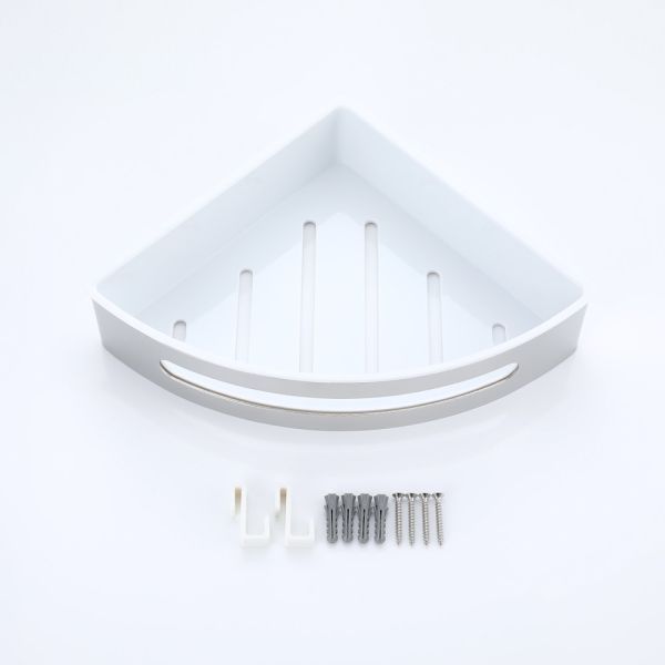 Полка для ванной комнаты угловая Raglo R340.01, хром. Размер: 24,5x22x6,5 см. Тип крепления: на болтах. Материал: нержавеющая сталь, авс-пластик.