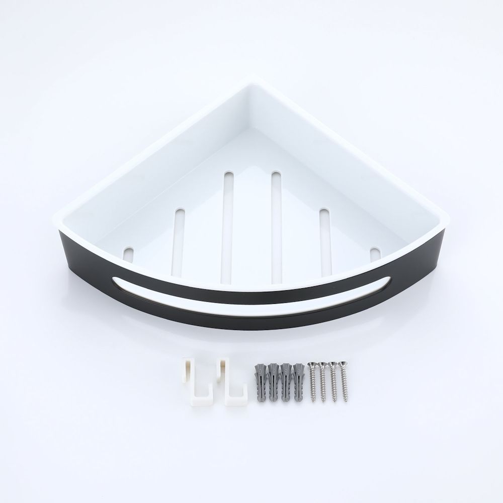 Полка для ванной комнаты угловая Raglo R340.01.06, черный. Размер: 24,5x22x6,5 см. Тип крепления: на болтах. Материал: нержавеющая сталь, авс-пластик.