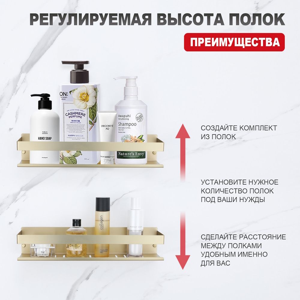Полка для ванной комнаты Raglo R340.03.03 золотой сатин купить