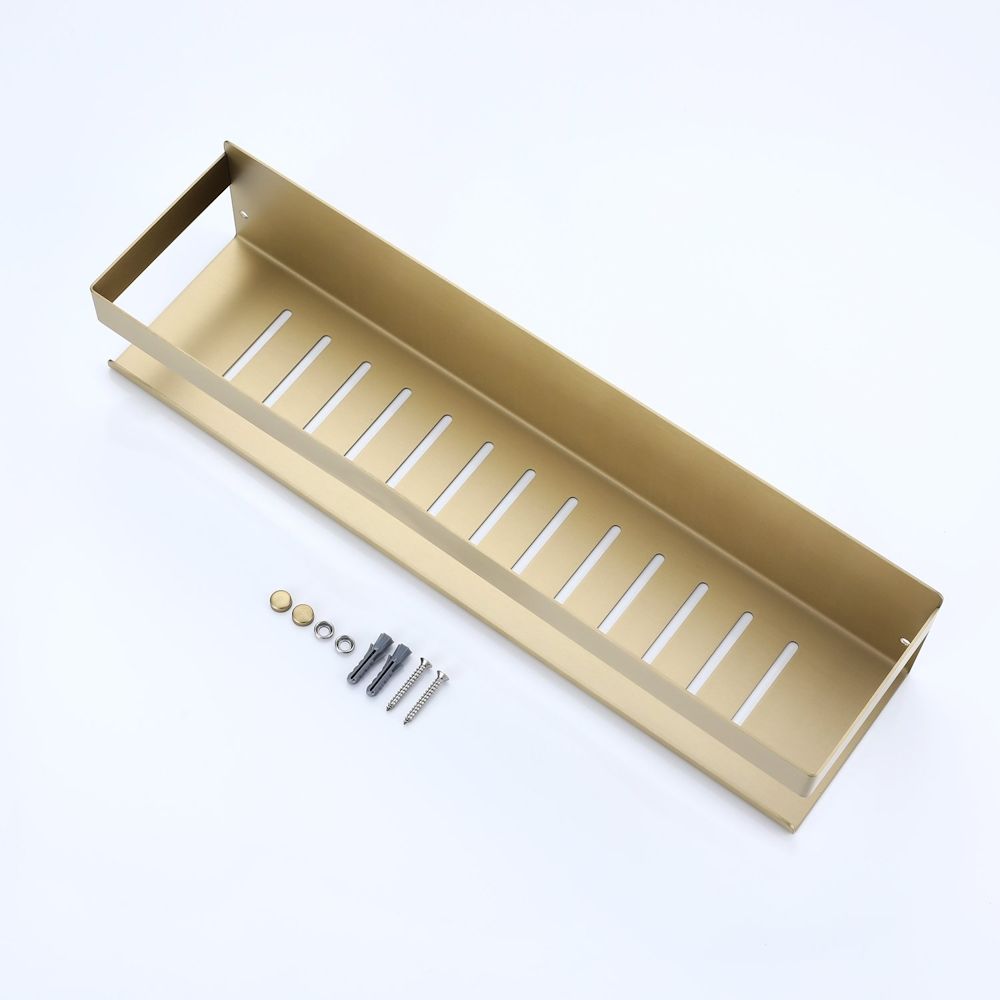 Полка для ванной комнаты Raglo R340.03.03, золотой сатин. Размер: 41x11,5x9 см. Тип крепления: на болтах. Материал: нержавеющая сталь.