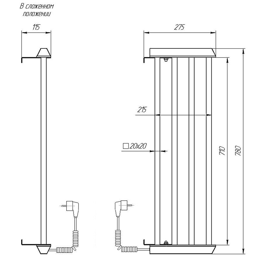 Количество перекладин: 4Коллекция: ПолкаТип: электрическиеЦвет: хромМощность, Вт: 52Ширина (мм): 830Высота (мм): 200Глубина (мм): 115-275Вес: 5Объем: 0.042Тэн/подключение: слеваСтрана: РоссияГарантия: 2 года