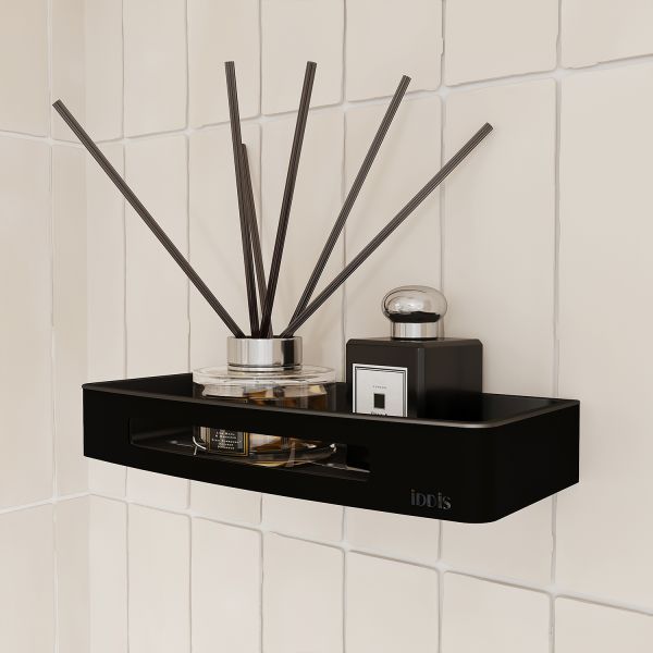 Черная полка для ванной комнаты вместит все необходимое для комфортного принятия душа. Размер 300х128 мм. Благодаря универсальному стилю подойдет для любой туалетной комнаты.