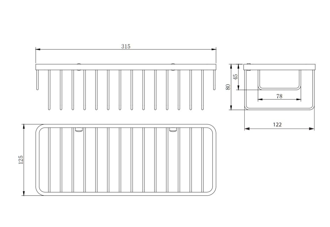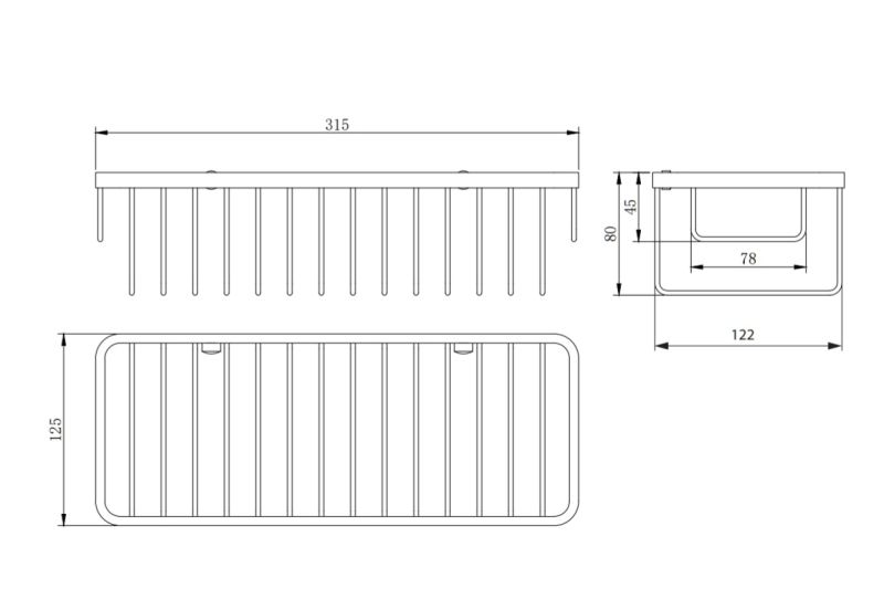 - ширина: 31,5 см, высота: 8 см, расстояние от стены: 12,5 см