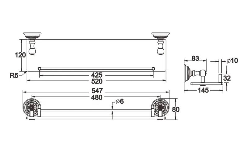 Полка стеклянная Rose RG1419Q 55см бронза купить
