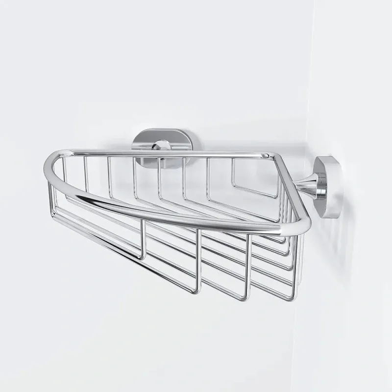 Полка в ванную угловая AM.PM Sense L A7434800 хромБогатство и вариативность коллекции аксессуаров Sense L позволит подобрать все для создания по-настоящему красивой семейной ванной комнаты. В этой коллекции представлены: безопасные поручни для ванны вместительные двойные стаканы функциональная угловая корзина для душа. Коллекция аксессуаров выполнена в скандинавском стиле для которого характерны простые и симметричные формы невероятная эргономичность и проработанные до мелочей детали. Все продукты коллекции произведены из сплава металлов высочайшего качества с многослойным стойким к истиранию хромовым покрытием. В аксессуарах используется закаленное матовое стекло которое абсолютно безопасно: даже разбиваясь оно не оставляет острых осколков.