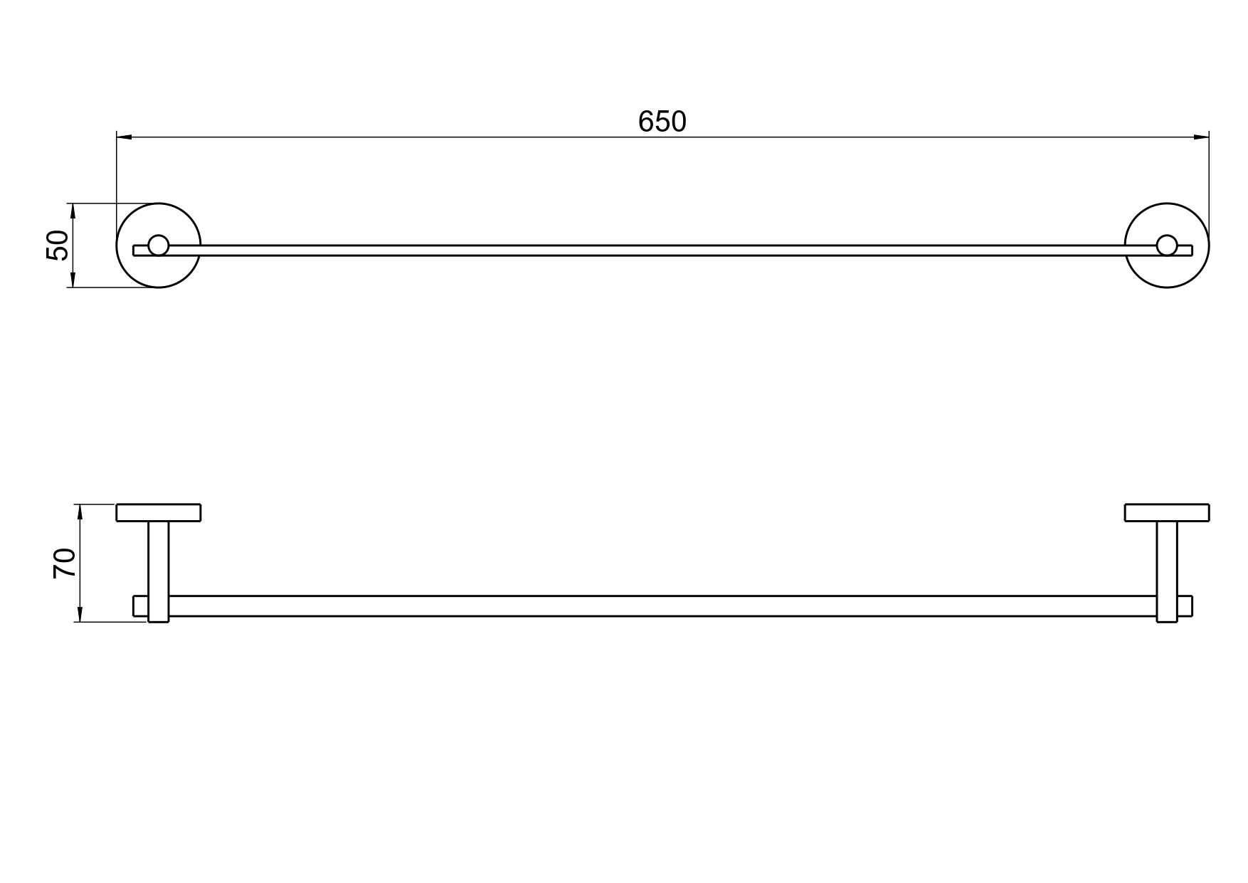 Общий размер (мм): 650*70*50Основной материал: латуньМонтаж: на стенуМетод крепления: шурупыНазначение: аксессуарыТип продукта: полотенцедержательГарантия (лет): 5