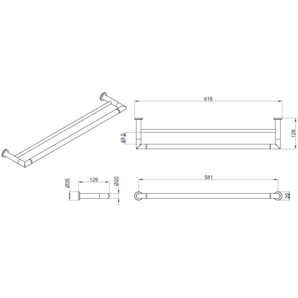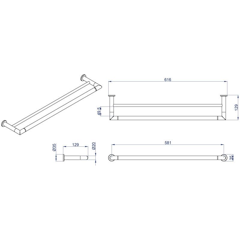 Полотенцедержатель AZARIO FORNY AZ-88302 трубчатый двойной 60 см купить