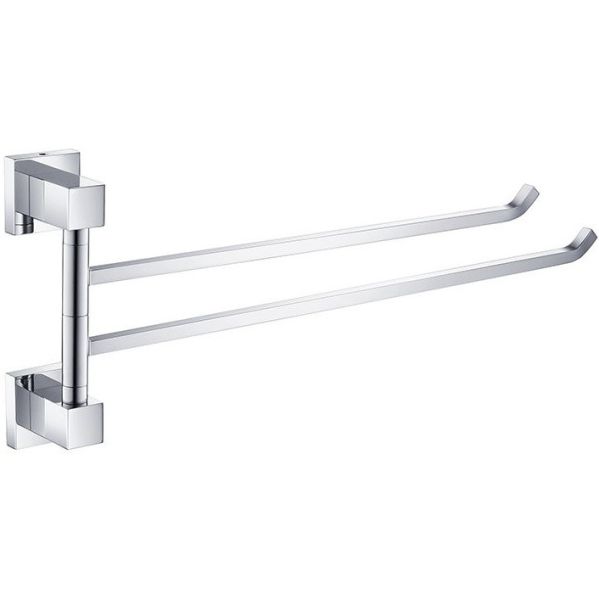 Полотенцедержатель Timo Selene — компактный двойной поворотный вариант для обустройства функционального интерьера. Настенный держатель, снабженный вращающимися планками, позволяет варьировать положение влажных полотнищ в пространстве и занимает совсем немного места. Длина планок обеспечивает удобство использования изделия и позволяет без труда разместить все необходимое. Модель имеет презентабельный дизайн и универсальное цветовое решение, поэтому отлично впишется в любой стиль ванной.Конструкция выдерживает солидные нагрузки благодаря прочности материала (латунь) и качественному исполнению. Латунь (класс А) с хромированным покрытием — идеальный материал для сантехнических аксессуаров, так как отличается гигиеничностью и устойчивостью к агрессивным воздействиям среды. Это гарантирует изделию долговечность. Настенный монтаж не вызовет трудностей (набор креплений входит в комплект поставки).