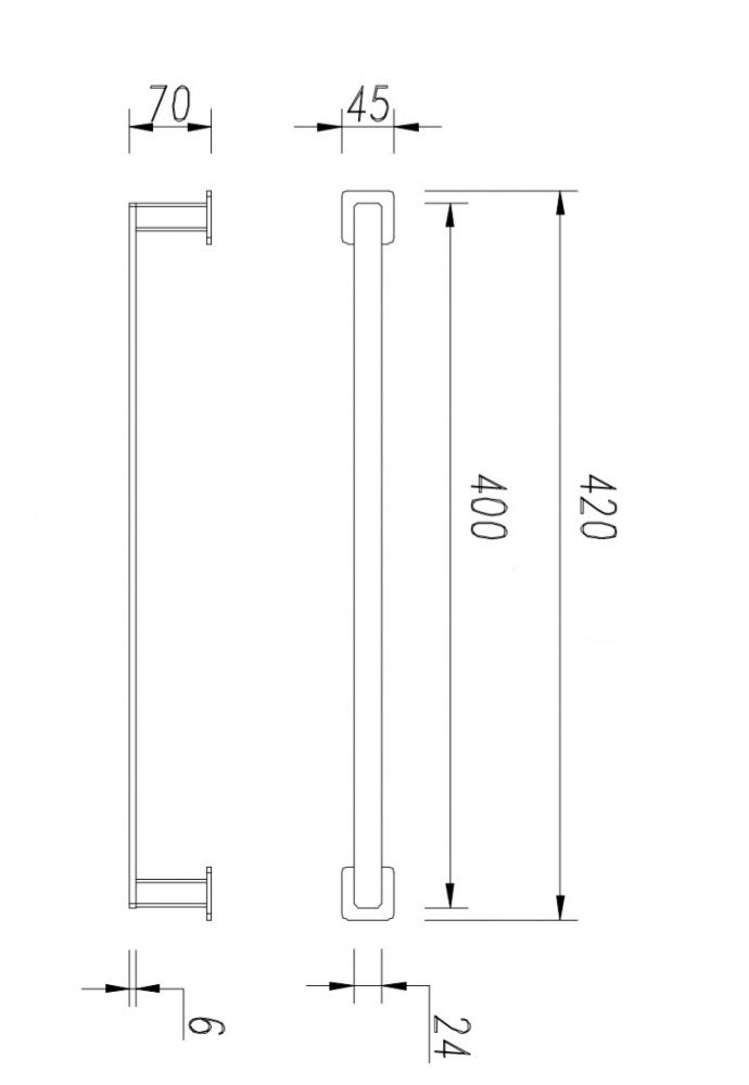 - ширина: 42 см, высота: 4,5 см, расстояние от стены: 7 см
