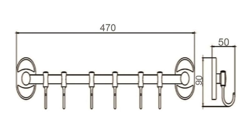 Держатель для полотенец трубчатый на шесть крючковДержатель, набор для монтажа