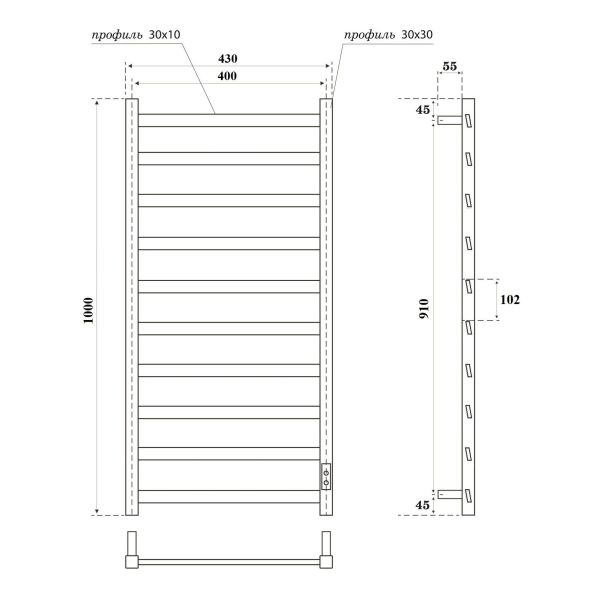 Полотенцесушитель электрический APEXTERMO Galaxy GL00104BM 1000x400, черный матовый